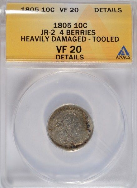 1805 BUST DIME ANACS VF DAMAGED, STILL A DESIRABLE COIN