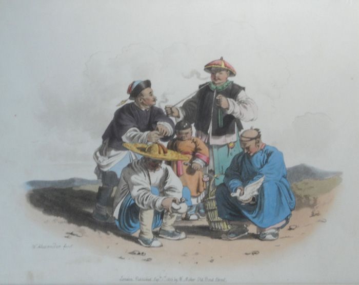 Two individually atrractively framed engravings of 'A Military Station' in China and 'Chinese Gamblers' Both accompanied in frame by a note explaining the scene and taken from The Costumes of China by William Alexander published in 1805. (2 items)