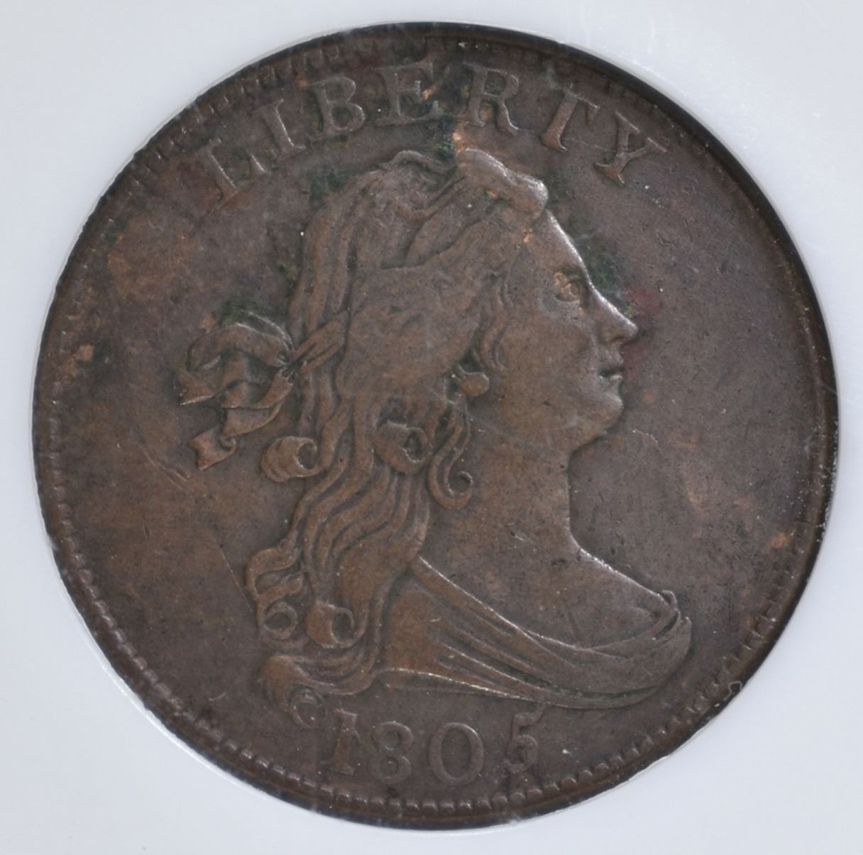 1805 DRAPED BUST HALF CENT, EF -SEE DETAILS!!!!