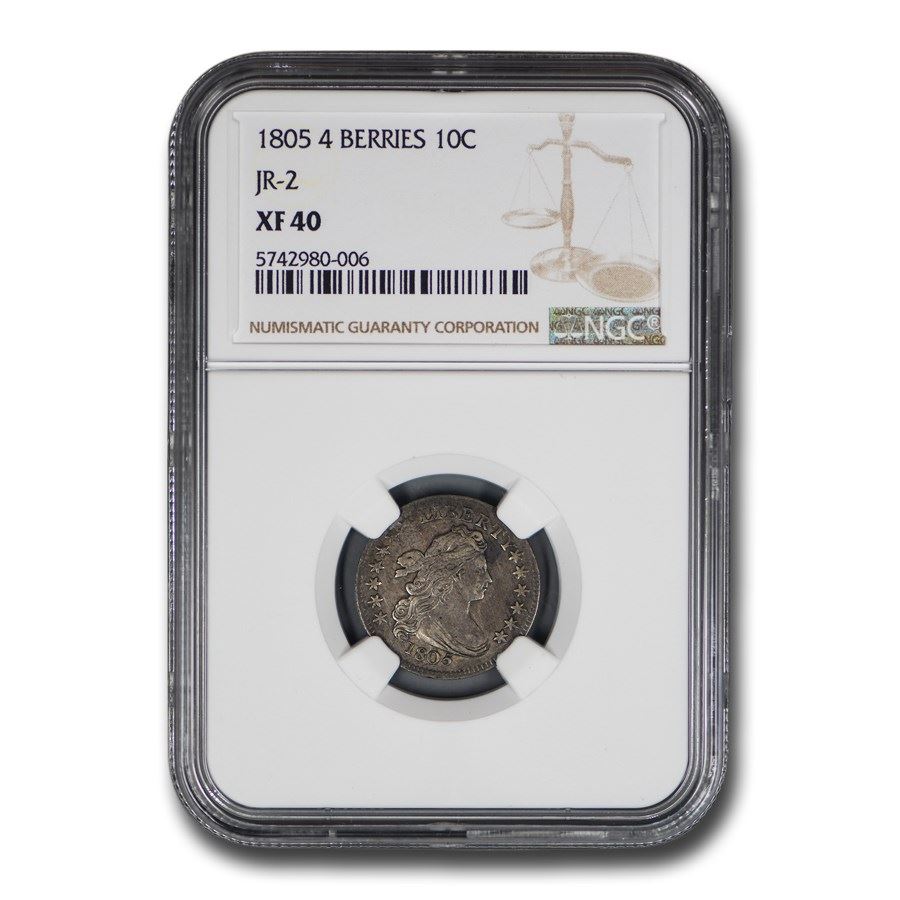 1805 Draped Bust Dime XF-40 NGC (4 Berries, JR-2)