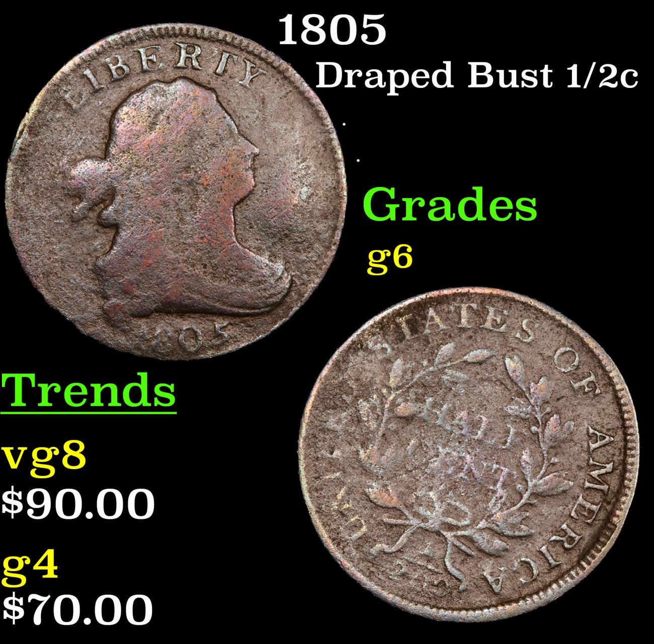 1805 . . Draped Bust Half Cent 1/2c Grades g+.