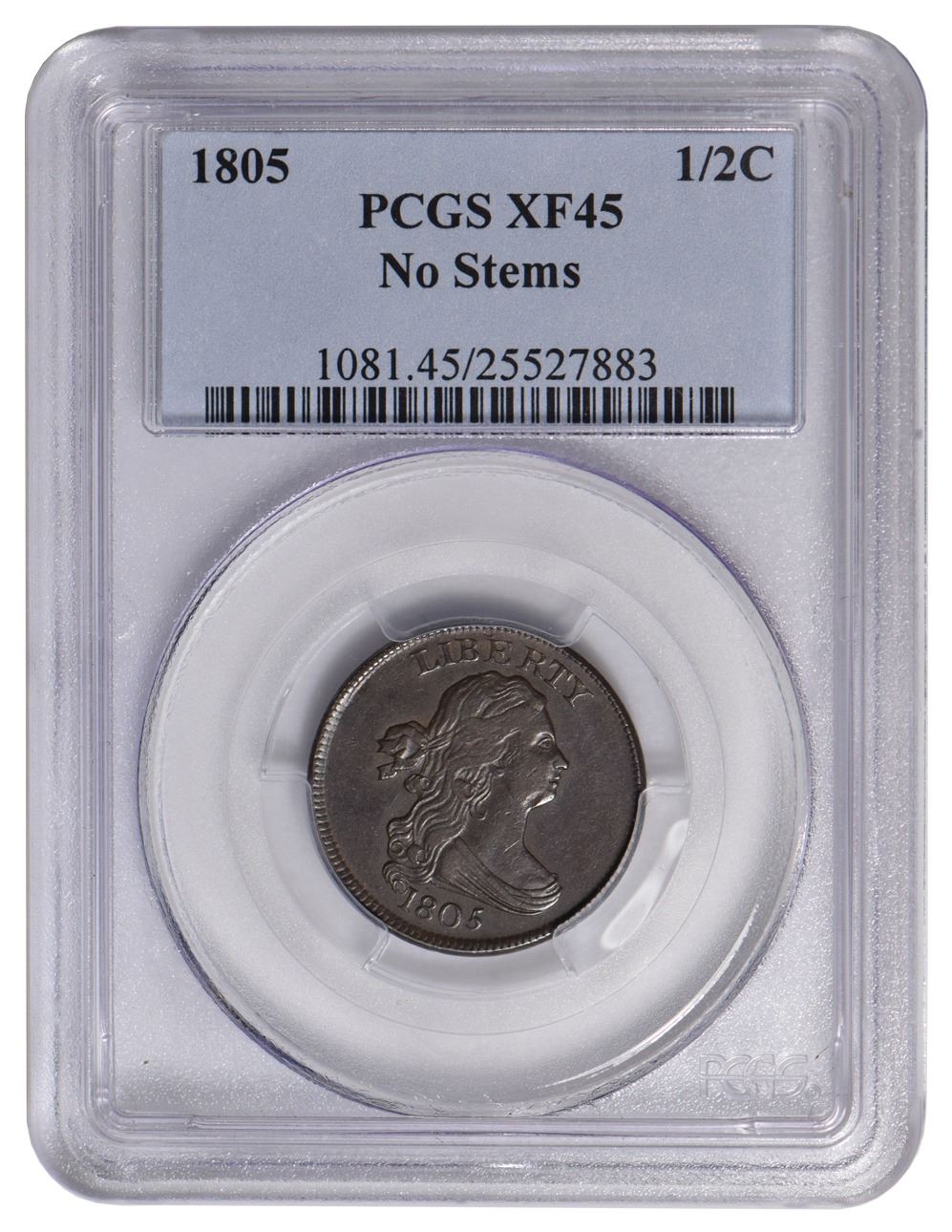 One 1805 Draped Bust Half Cent PCGS XF45.