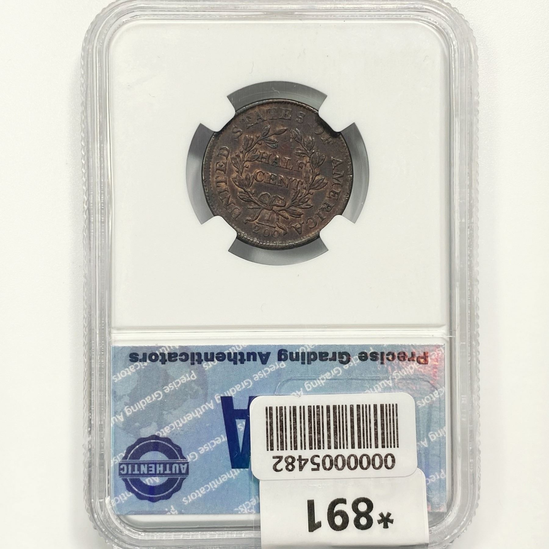 1805 Draped Bust Half Cent PGA AU55 Lg 5 w/ Stems, C-4