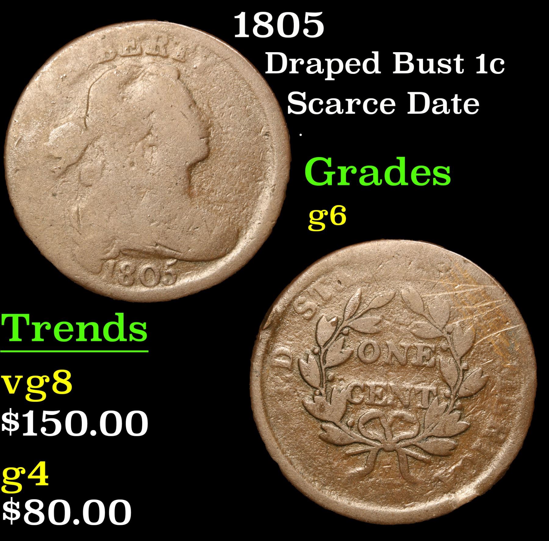 1805 Draped Bust Large Cent 1c Grades g+. Scarce Date