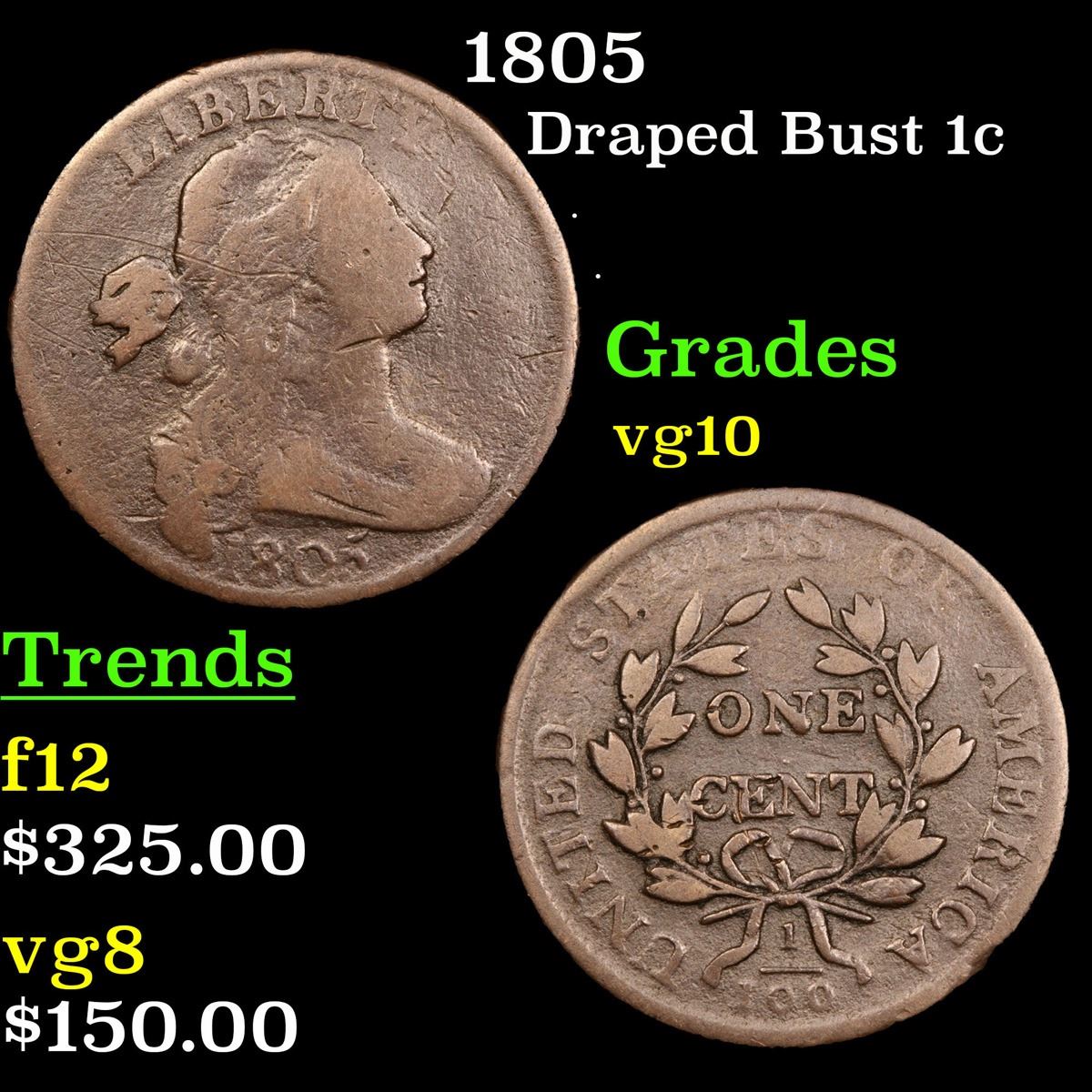 1805 Draped Bust Large Cent 1c Grades vg+.