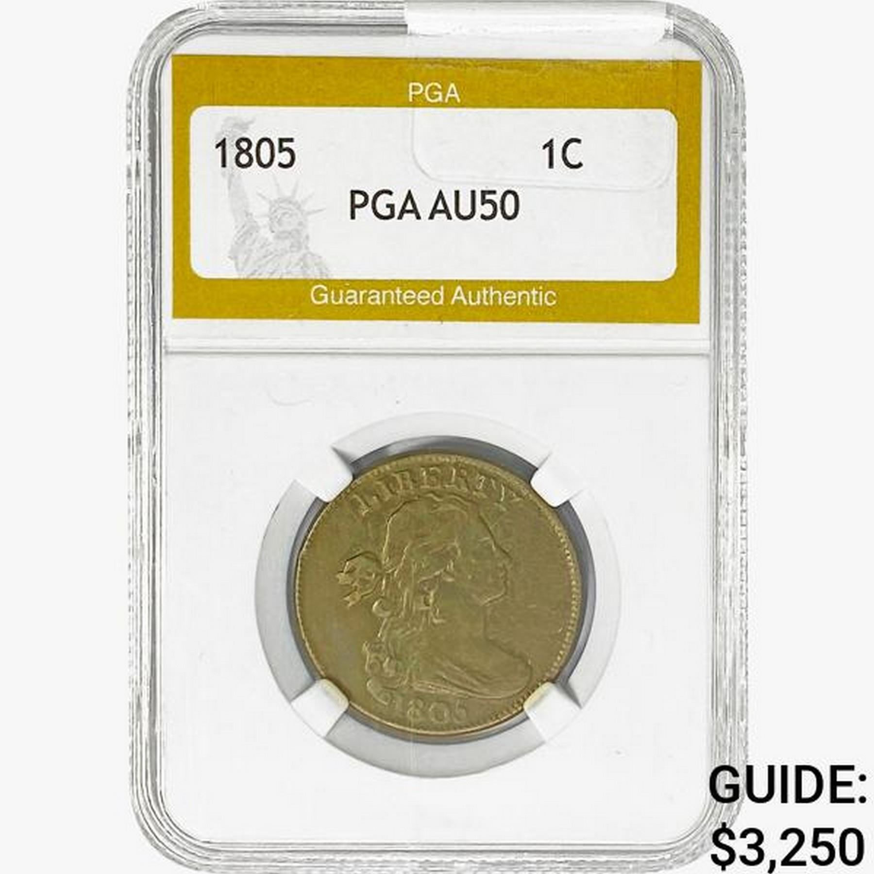 1805 Draped Bust Large Cent PGA AU50