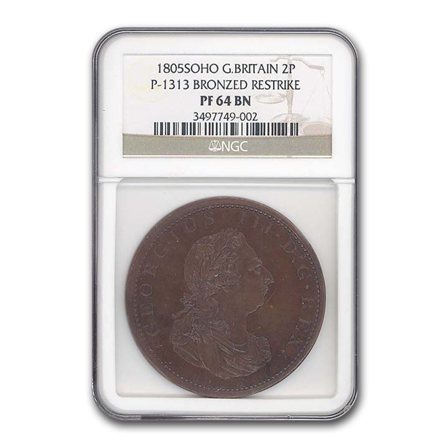 1805 Great Britain Twopence P-1313 Bronzed Restrike PF-64 BN NGC
