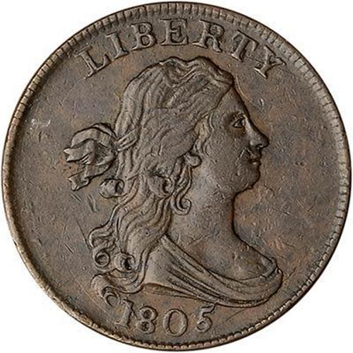 1805 H1C C-4 R2- VF30+. Large 5 with Stems.