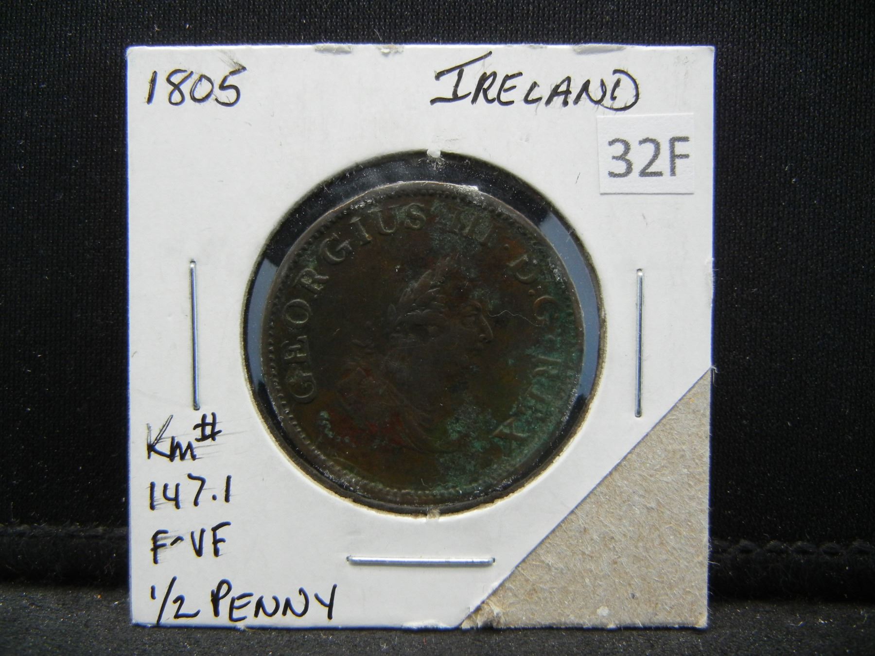 1805 Ireland 1/2 Penny. F-VF.