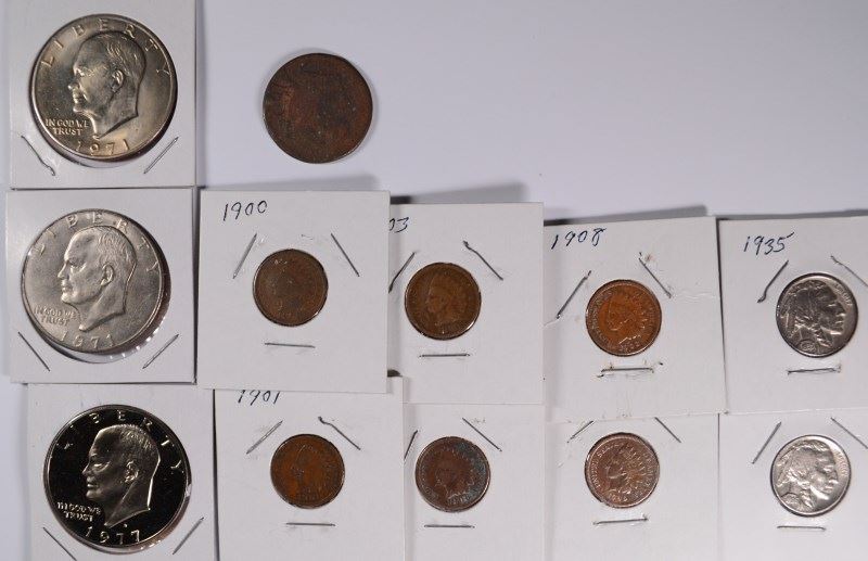 1805 LARGE CENT POOR, CORRODED, 6 INDIAN CENTS, 1935, 36 BUFFALO NICKELS, 1971-P