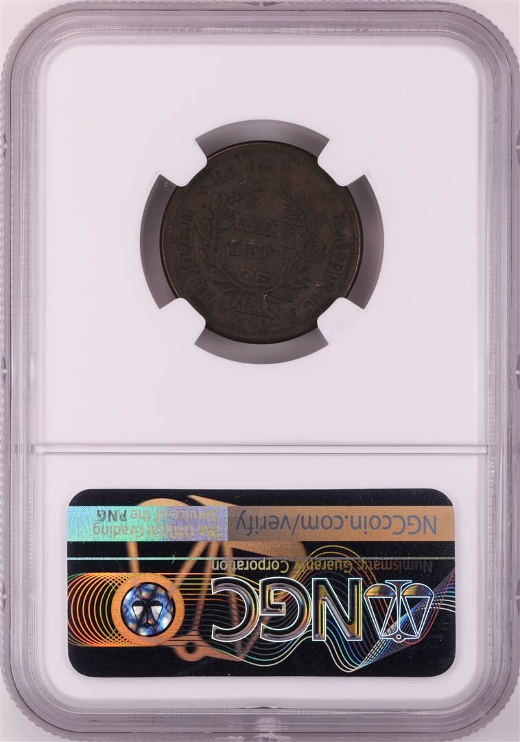 One 1805 Large 5 With Stems C-4 Draped Bust Half Cent Coin NGC F15 BN. NGC Certified.