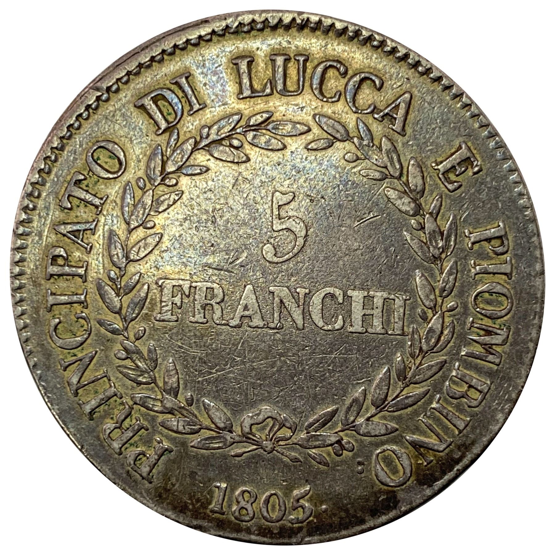 1805 Lucca & Piombino SIlver 5 Franchi NEARLY UNCIRCULATED