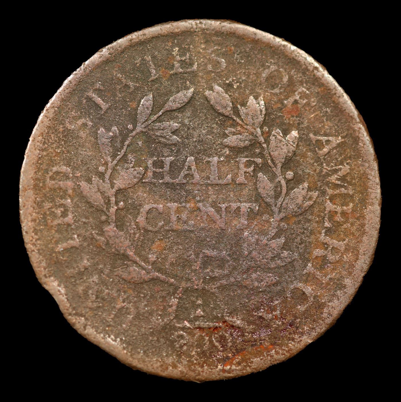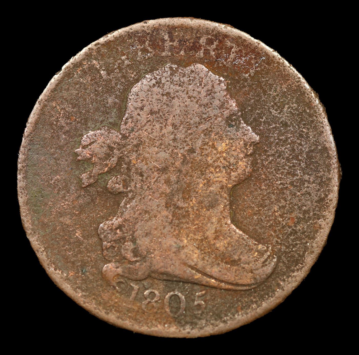 1805 No Stems Draped Bust Half Cent 1/2c Grades f+.