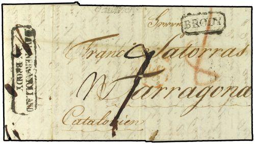 1805 TULEZYN (Ucrania) a TARRAGONA (España). Encaminador al dorso HAUGNER.VIOLLAND/IN BRODY y marca en el frente BRODY. Tasada a la llegada con "9 reales".