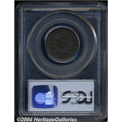 <B>1806<1/2 C> Large 6, Stems AU55 PCGS.</B></I> B-4, C-4, R.1. A smooth mahogany-brown piece that is clean aside from a mark on the chin. The upper reverse has slight softness of strike. The obverse is double struck, noticeable below the hair ribbon and below Liberty's chin. The dies are rotated approximately 30 degrees clockwise. Population: 6 in 55, 25 finer (3/04). <BR><BR><B>Important notice:</B> Heritage usually auctions material at the rate of 200-250 lots per hour. On some occasions eBay Live bid software or the Internet may not be able to keep up with the pace of the auction. We recommend placing a realistic absentee bid now as insurance to avoid disappointment. Occasionally the auctioneer may eliminate or reject an eBay Live bid, and the auctioneer may also reopen a lot after the close of the eBay live bidding (usually because we missed an audience bid), and may reject your bid even if it shows you as the winning bidder. By bidding via eBay Live, you agree that Heritage may award the lot to another bidder at its sole discretion under the circumstances described above or any other reasonable circumstances. Since eBay bids are not shown to us until we open the lot on the floor, we treat those bids just like floor bids. In most cases the floor responds before the eBay bid is presented to us, due to Internet lag time, so for consistency we have made it a policy that floor bids are always considered first over tie eBay live bids. Also please note that all Heritage lots purchased through eBay Live carry a 20% Buyer's Premium. Please make sure you read the Terms and Conditions before you bid.