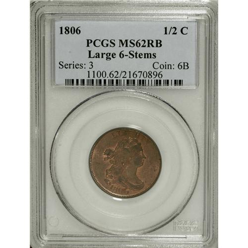 1806 1/2 C Large 6, Stems MS62 Red and Brown PCGS. C-4