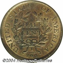 <table><tr><td><table><tr><td>1806 1/2 C Large 6, Stems MS63 Red and Brown NGC. B-4, C-4, R.1. The peak of the large, repunched 6 is affixed to the base of Liberty's bust. Abundant rose-gold color accompanies the legends and devices. The strike is generally crisp, although the TES in STATES and a couple of leaves on the wreath are not fully brought up by the dies. A few trivial handling marks in the fields do not distract. A scarce variety in Mint State with some Red color. Population: 1 in 63 Red and Brown, 1 finer (3/04).From the Robert Bowling Collection. <BR><BR><B>Important notice:</B> Heritage usually auctions material at the rate of 200-250 lots per hour. On some occasions eBay Live bid software or the Internet may not be able to keep up with the pace of the auction. We recommend placing a realistic absentee bid now as insurance to avoid disappointment. Occasionally the auctioneer may eliminate or reject an eBay Live bid, and the auctioneer may also reopen a lot after the close of the eBay live bidding (usually because we missed an audience bid), and may reject your bid even if it shows you as the winning bidder. By bidding via eBay Live, you agree that Heritage may award the lot to another bidder at its sole discretion under the circumstances described above or any other reasonable circumstances. Since eBay bids are not shown to us until we open the lot on the floor, we treat those bids just like floor bids. In most cases the floor responds before the eBay bid is presented to us, due to Internet lag time, so for consistency we have made it a policy that floor bids are always considered first over tie eBay live bids. Also please note that all Heritage lots purchased through eBay Live carry a 20% Buyer's Premium. Please make sure you read the Terms and Conditions before you bid. <BR><BR><B>IMPORTANT ANNOUNCEMENT ABOUT RESERVES:</B> Heritage now divulges all reserves on its web site 7 days before every auction. If you want to know whether the reserve on this lot has been met, and if not, what the reserve amount is, please visit this lot page on the HeritageCoin.com web site, or email: bid@HeritageGalleries.com </span></font></td></tr></table></td></tr></table>