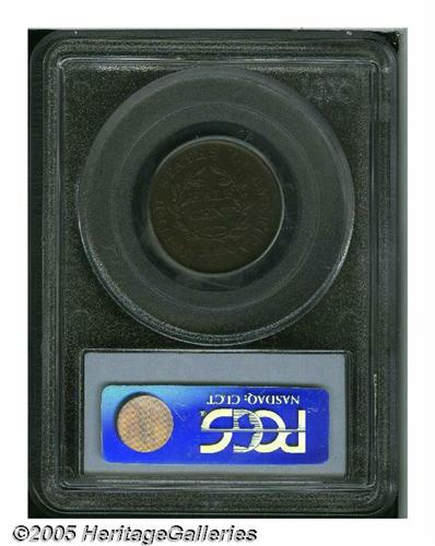 <B>1806<1/2 C> Small 6, No Stems AU53 PCGS.</B></I> B-3, C-1, R.1. A bold golden-brown example of this popular <I>Guide Book</B></I> variety, the final date in a three year run for which both Stems and No Stems reverses were struck. Very clean overall, a faint spot is on a berry beneath the first T in STATES, and a few nearly imperceptible blemishes are on the cheek.