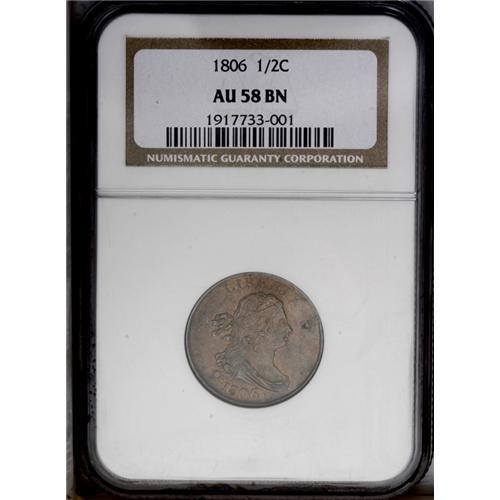 1806 1/2 C Small 6, No Stems AU58 NGC. C-1, B-3, R.1.
