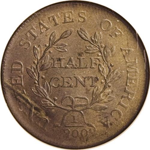 <B>1806<1/2 C> Small 6, No Stems MS64 Brown NGC.</B></I> C-1, B-3, R.1. While Walter Breen recorded four different die states, Ron Manley included all of these in one die state description. Breen's perfect obverse die apparently does not exist, for the Ruby coin mentioned by him is clearly from a clashed obverse. According to Manley, all examples have the die cracks and rim breaks of Breen's later die states. This example has peripheral weakness in the area of these cracks. Aside from the weakness mentioned, this piece is exceptional and has fully lustrous light brown surfaces. The left side of the reverse is toned to a darker steel color. Traces of original red mint color remain, especially on the reverse. Breen Die State undetermined. EAC 60.<BR><I>Ex: Unidentified Ira Reed Sale, lot 238; Harold Bareford; William Bareford (5/1984); Jules Reiver Collection (Heritage, 1/06), lot 19076.</B></I>