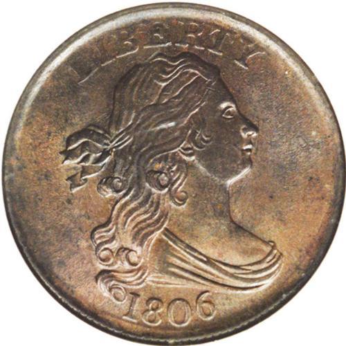 1806 1/2 C Small 6, No Stems MS64 Brown NGC. C-1, B-3,