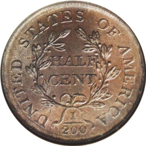 <B>1806<1/2 C> Small 6, No Stems MS64 Brown NGC.</B></I> C-1, B-3, R.1. The last of the Stemless Draped Bust half cent varieties. A lustrous near-Gem with pleasing chocolate and medium brown toning. Frosty tan on each side is faded from original mint red. A couple of minor, brief marks are found near the wreath ribbons, but the overall appearance is refreshingly unblemished. Well struck save for the left portion of UNITED and LIBERTY. Clashed near Liberty's profile and beneath her hair ribbon. Ron Manley commented: "It is my opinion that the obverse clash marks always seen with this variety are the result of an earlier clashing during the 1806 C-3 mintage with its reverse die." EAC 62. Census: 14 in 64 Brown, 4 finer (9/06).
