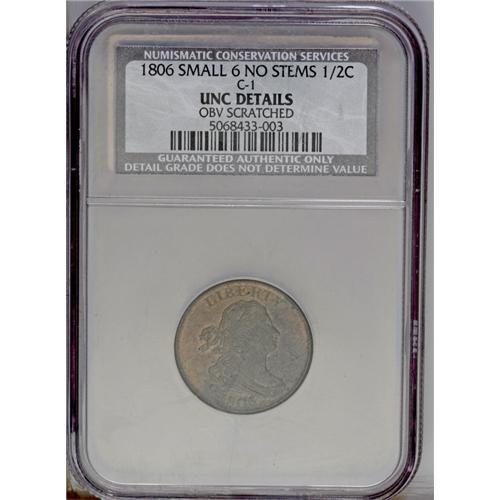 1806 1/2 C Small 6, No Stems--Obverse Scratched--NCS.