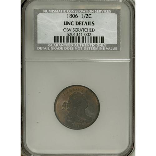 1806 1/2 C Small 6, No Stems--Obverse Scratched--NCS.