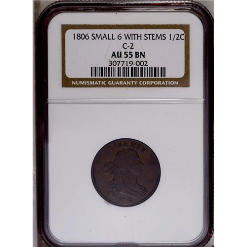 "1806 1/2 C Small 6, Stems AU55 NGC. C-2"