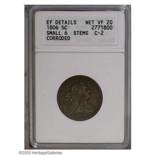 1806 1/2 C Small 6, Stems--Corroded--ANACS. XF Details 1806[1/2 C] Small 6, Stems--Corroded--ANACS.