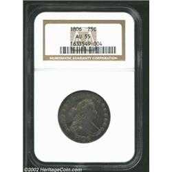 1806 25C AU55 NGC. B-9, R.1. A later die state, the obverse exhibits a bisecting crack (as struck) f
