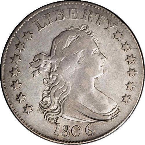 <B>1806<25C> B-3, R.1. VF35 NGC. Die State III.</B></I> I and T broken; 5 clear of all devices. Spine at R visible. Medium to light gray and pleasing for the color and surface quality. The strike is moderately weak on the central devices, apparently as nearly always seen. The obverse shows light clashing near Liberty's neck and heavier clashing on the reverse on the right side from Liberty's profile. Rim crumbling on the upper left obverse as always. <BR><I>Ex: Julian Leidman (9/1978).</B></I> Envelope Included.