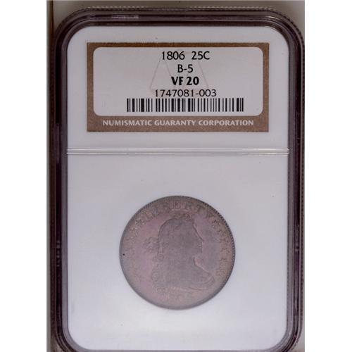 1806 25C VF20 NGC. B-5, R.5. Subtle orange-gray surfac