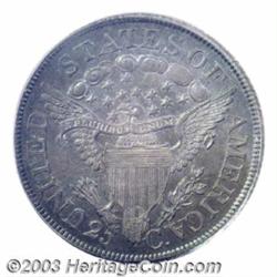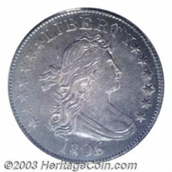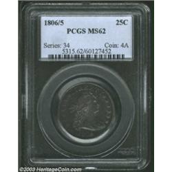 <TABLE cellSpacing=0 cellPadding=0 width="100%" bgColor=#000000 border=0><TBODY><TR><TD width="100%"><TABLE cellSpacing=1 cellPadding=3 width="100%" border=0><TBODY><TR><TD width="100%" bgColor=#79735c><FONT face=arial color=#ffffff size=3><B>Description</B> </FONT></TD></TR><TR><TD width="100%" bgColor=#ffffff><FONT face=arial size=2><B>1806/5 25C MS62 PCGS.</B></I> B-1, R.2. Sea-green, lavender, and navy-blue colors appear when this deeply and originally toned example is rotated under a light. The curves and ball of the underdigit 5 are obvious. The only overdated variety of the year. The major devices are well struck, although the left side obverse stars are flat. The surfaces are refreshingly undisturbed, with a couple of faint handling marks on the vertical shield stripes as the only detriment. Struck from strongly clashed dies. Less than twenty pieces of this variety have been certified as Mint State by the two major services, and several of these could well be resubmissions. Population: 4 in 62, 7 finer (4/03). </FONT></TD></TR></TBODY></TABLE></TD></TR></TBODY></TABLE><BR><A name=PricesRealized></A><TABLE cellSpacing=0 cellPadding=0 width="100%" bgColor=#000000 border=0><TBODY><TR><TD width="100%"><TABLE cellSpacing=1 cellPadding=3 width="100%" border=0><TBODY><TR><TD width="100%" bgColor=#79735c><A name=PR><FONT face=arial color=#ffffff size=3><B>Previous Prices from Heritage Auctions</B> </FONT></A></TD></TR><TR><TD bgColor=#f6f6ed><TABLE cellSpacing=0 cellPadding=0 width="100%" border=1><TBODY><TR><TD align=middle width="33%"><B>Date</B></TD><TD align=middle width="33%"><B>Service</B></TD><TD align=middle width="33%"><B>Price</B></TD></TR><TR bgColor=whitesmoke><TD width="33%"><B>06/06/1998</B></TD><TD width="33%">NGC</TD><TD width="33%">$15,525.00</TD></TR></TBODY></TABLE></TD></TR><TR><TD bgColor=#ffffff><FONT face=arial size=1 ?>PLEASE NOTE: All prices realized reflect the final hammer price PLUS the buyer's premium in auctions that charge a buyer's premium. Each item has a notation at the top of the listing indicating whether that lot included a buyer's premium. Example: A item that sells with a final hammer price of $100 and a 20% buyer's premium will display with a price realized of $120. All information listed is intended to be as accurate as possible, but errors are possible. Please use this guide carefully and inform us of any inaccuracies. </FONT></TD></TR></TBODY></TABLE></TD></TR></TBODY></TABLE><BR><TABLE cellSpacing=0 cellPadding=0 width="100%" bgColor=#000000 border=0><TBODY><TR><TD width="100%"><TABLE cellSpacing=1 cellPadding=3 width="100%" border=0><TBODY><TR><TD width="100%" bgColor=#79735c colSpan=6><FONT face=arial color=#ffffff size=3><B>Price Guide*</B> </FONT></TD></TR><TR bgColor=#f6f6ed><TD align=middle><B>Grade</B> </TD><TD align=middle><B>Coin World<BR>(Trends)</B> </TD><TD align=middle><B>Numismedia<BR>Retail</B> </TD><TD align=middle><B>Numismedia<BR>Wholesale</B> </TD><TD align=middle><B>Coin<BR>Universe</B> </TD><TD align=middle><B>Heritage<BR>Value Index</B> </TD></TR><TR bgColor=#ffffff><TD align=middle>61</TD><TD align=right>---</TD><TD align=right>---</TD><TD align=right>$9,750.00</TD><TD align=right>---</TD><TD align=right>$5,413.75</TD></TR><TR style="FONT-WEIGHT: bold" bgColor=#cccfdd><TD align=middle>62</TD><TD align=right>---</TD><TD align=right>---</TD><TD align=right>$13,250.00</TD><TD align=right>$7,425.00</TD><TD align=right>$7,182.50</TD></TR><TR bgColor=#ffffff><TD align=middle>63</TD><TD align=right>---</TD><TD align=right>---</TD><TD align=right>$16,500.00</TD><TD align=right>$15,400.00</TD><TD align=right>$11,465.00</TD></TR><TR bgColor=#ffffff><TD colSpan=6><FONT size=1>*All information listed is intended to be as accurate as possible, but errors are possible. No item may be returned or refused based on this information which is provided as a service to our customers. You should contact each pricing source directly to determine the accuracy of this information. </FONT></TD></TR></TBODY></TABLE></TD></TR></TBODY></TABLE><BR><TABLE cellSpacing=0 cellPadding=0 width="100%" bgColor=#000000 border=0><TBODY><TR><TD width="100%"><TABLE cellSpacing=1 cellPadding=3 width="100%" border=0><TBODY><TR><TD width="100%" bgColor=#79735c><FONT face=arial color=#ffffff size=3><B>Population Guide</B> </FONT></TD></TR><TR bgColor=#ffffff><TD align=middle><!-- Begin Output of Population Grid--><TABLE cellSpacing=0 cellPadding=0 width="100%" border=0><TBODY><TR><TD vAlign=center><TABLE cellSpacing=0 width="100%" border=1 cellsadding="3"><TBODY><TR><TD vAlign=center><TABLE cellSpacing=0 cellPadding=3 width="100%" border=1><TBODY><TR><TD vAlign=center align=middle bgColor=#f0f1e8 colSpan=2 <CENTER><FONT face=Arial size=2><B>PCGS Pop </B></FONT><CENTER></CENTER></TD><TD vAlign=center align=middle bgColor=#f0f1e8 colSpan=2><CENTER><FONT face=Arial size=2><B>NGC Pop</B></CENTER></FONT></TD></TR><TR><TD vAlign=center><FONT face=Arial size=2>(62)</FONT> </TD><TD vAlign=center align=right><FONT face=Arial size=2>4</FONT> </TD><TD vAlign=center><FONT face=Arial size=2>(62)</FONT> </TD><TD vAlign=center align=right><FONT face=Arial size=2>3</FONT> </TD></TR><TR><TD vAlign=center><FONT face=Arial size=2>(>62)</FONT> </TD><TD vAlign=center align=right><FONT face=Arial size=2>7</FONT> </TD><TD vAlign=center><FONT face=Arial size=2>(>62)</FONT> </TD><TD vAlign=center align=right><FONT face=Arial size=2>3</FONT> </TD></TR></TBODY></TABLE></TD></TR></TBODY></TABLE></TD></TR></TBODY></TABLE><!-- End Output of Population Grid--> Important notice: Heritage usually auctions material at the rate of 200-250 lots per hour. On some occasions eBay Live bid software or the Internet may not be able to keep up with the pace of the auction. We recommend placing a realistic absentee bid now as insurance to avoid disappointment. Occasionally the auctioneer may eliminate or reject an eBay Live bid, and the auctioneer may also reopen a lot after the close of the eBay live bidding 