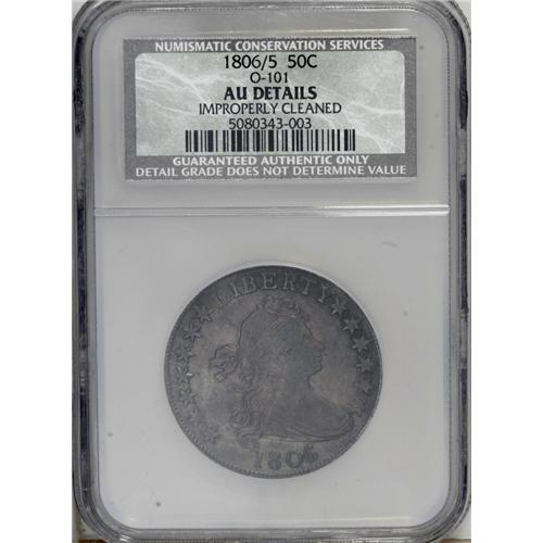 <B>1806/5<50C>--Improperly Cleaned--NCS. AU Details.</B></I> O-101, R.3. A nicely struck piece that has largely retoned in pewter-gray and strawberry-gold. The fields are unnaturally bright for the age and toning.