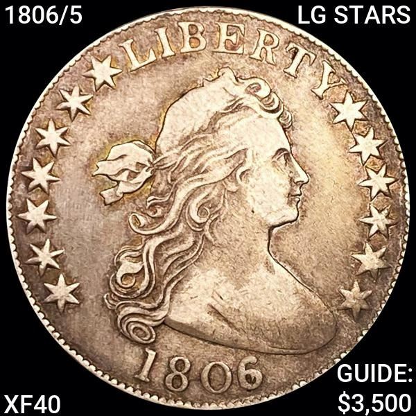 1806/5 LG STARS Draped Bust Half Dollar NEARLY UNC