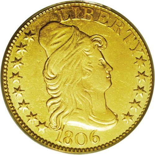 1806 $5 Pointed Top 6, 8x5 Stars AU50 PCGS. Breen-6447 1806[$5] Pointed Top 6, 8x5 Stars AU50 PCGS.