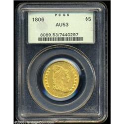 1806 $5 Round Top 6, 7x6 Stars AU53 PCGS.
