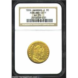 1806 $5 Round Top 6, 7x6 Stars AU55 NGC. B. 5-E, Miller-84, R.3. While the Knobbed 6 1806 is a commo