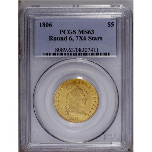 1806 $5 Round Top 6, 7x6 Stars MS63 PCGS. Breen-6448, 1806[$5] Round Top 6, 7x6 Stars MS63 PCGS.