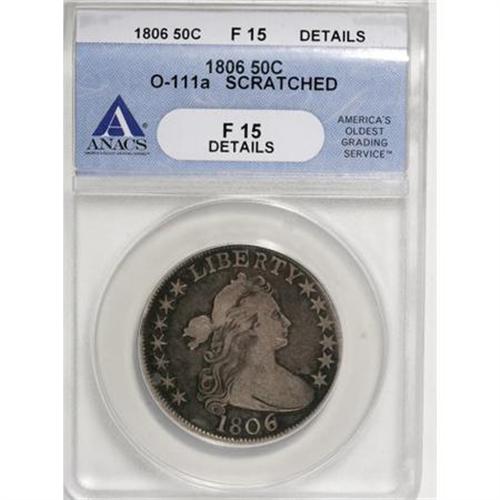 1806 50C 6 Over Inverted 6 F15 ANACS