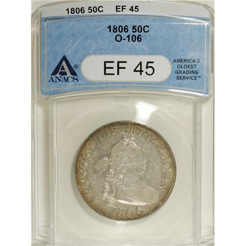 1806 50C Knob 6, Small Stars XF45 ANACS. O-106, R.4. A