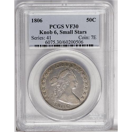 1806 50C Knobbed 6, Large Stars VF30 PCGS. O-105, R.2.