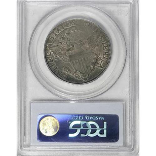 <B>1806 50C Knobbed 6, Large Stars VF35 PCGS.</B></I> O-105, R.2. The only die pairing matching both the Knobbed 6 and Large Stars characteristics. Warm gold and violet-blue toning drapes the luminous surfaces of this Choice VF survivor. Striking softness and a long, thin abrasion are noted at the right side of the field of stars above the eagle on the reverse.<BR><BR><B>Coin Engraver:</B> Robert Scot<BR><BR><b>Shipping:</b> Coins & Currency (<a target="_blank" href="http://www.heritageauctions.com/common/shipping.php">view shipping information</a>)