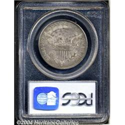 <B>1806<50C> Knobbed 6, Small Stars VF20 PCGS.</B></I> O-106, R.4. Six berries on the olive branch instead of the usual five, and the 8 in the date is recut. The bold die line extending right from the upper right corner of the shield further confirms the variety. The relatively clean surfaces are light gray in color, and the design elements reveal excellent detail for the grade. This is a very attractive coin. Population: 2 in 20, 14 finer (3/04). <BR><BR><B>Important notice:</B> Heritage usually auctions material at the rate of 200-250 lots per hour. On some occasions eBay Live bid software or the Internet may not be able to keep up with the pace of the auction. We recommend placing a realistic absentee bid now as insurance to avoid disappointment. Occasionally the auctioneer may eliminate or reject an eBay Live bid, and the auctioneer may also reopen a lot after the close of the eBay live bidding (usually because we missed an audience bid), and may reject your bid even if it shows you as the winning bidder. By bidding via eBay Live, you agree that Heritage may award the lot to another bidder at its sole discretion under the circumstances described above or any other reasonable circumstances. Since eBay bids are not shown to us until we open the lot on the floor, we treat those bids just like floor bids. In most cases the floor responds before the eBay bid is presented to us, due to Internet lag time, so for consistency we have made it a policy that floor bids are always considered first over tie eBay live bids. Also please note that all Heritage lots purchased through eBay Live carry a 20% Buyer's Premium. Please make sure you read the Terms and Conditions before you bid. </span></font></tr></table></td></tr></table>