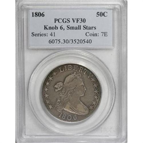1806 50C Knobbed 6, Small Stars VF30 PCGS