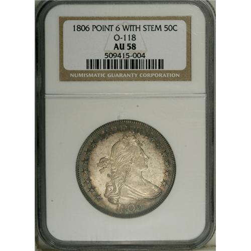 1806 50C Pointed 6, Stem AU58 NGC. O-118a, R.3. A midd