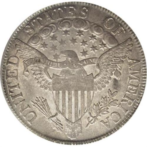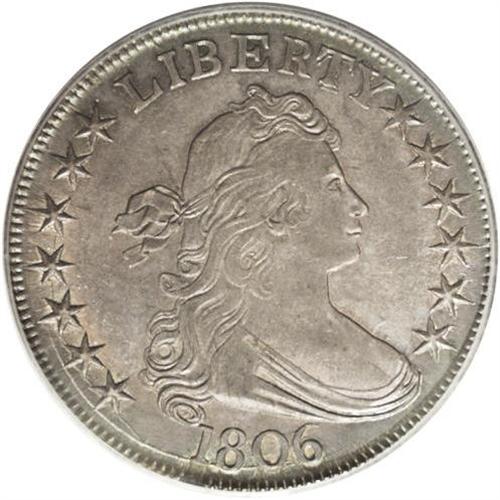 <B>1806 50C Pointed 6, Stem AU58 PCGS.</B></I> O-115, R.1. Toned a medium gray with soft crimson and gold undertones, and a thin ring of aqua blue around the rims. Nicely struck, except for softness in the hair at Liberty's forehead, in some of the star centers along the right obverse border, and in the feathers of the eagle's neck and breast. The design elements are generally nicely centered on the planchet, especially on the reverse. The surfaces retain considerable luster, and are virtually devoid of any significant abrasions. Simply an attractive coin in every respect, and a real prize for early half dollar collectors.<BR><BR><b>Shipping:</b> Coins & Currency (<a target="_blank" href="http://www.heritageauctions.com/common/shipping.php">view shipping information</a>)