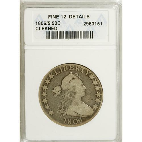 <B>1806 50C Knobbed 6, Stem--Corroded--ANACS. XF40 Details.</B></I> O-106. NGC Census: (127/322). PCGS Population (66/227). Mintage: 839,576. Numismedia Wsl. Price: $1,743. (#6071)<BR><BR><b>Shipping:</b> Coins & Currency (<a target="_blank" href="http://www.heritageauctions.com/common/shipping.php">view shipping information</a>)