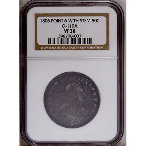 1806 50C Pointed 6, Stem VF30 NGC. O-119a, R.3. Struck